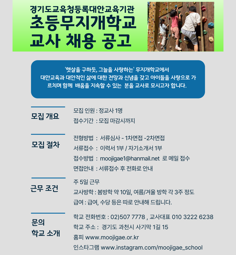 <교사채용공고> 과천 초등무지개학교에서 교사를 모십니다.