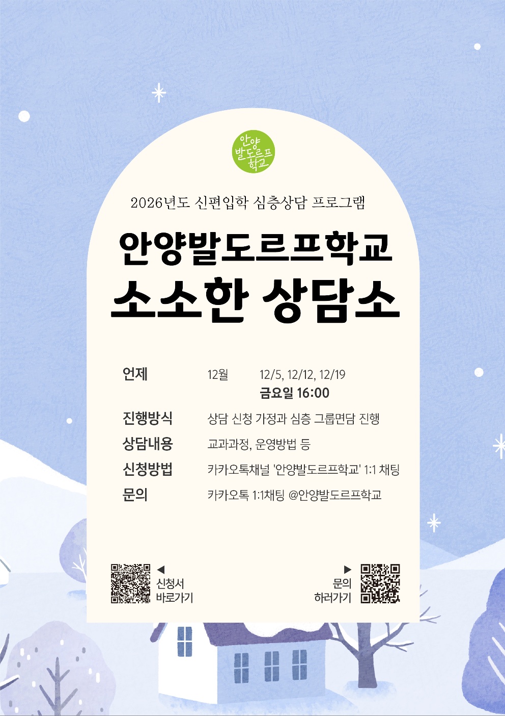 • 문의 : 카카오톡 채널 '안양발도르프 학교' 1:1 채팅